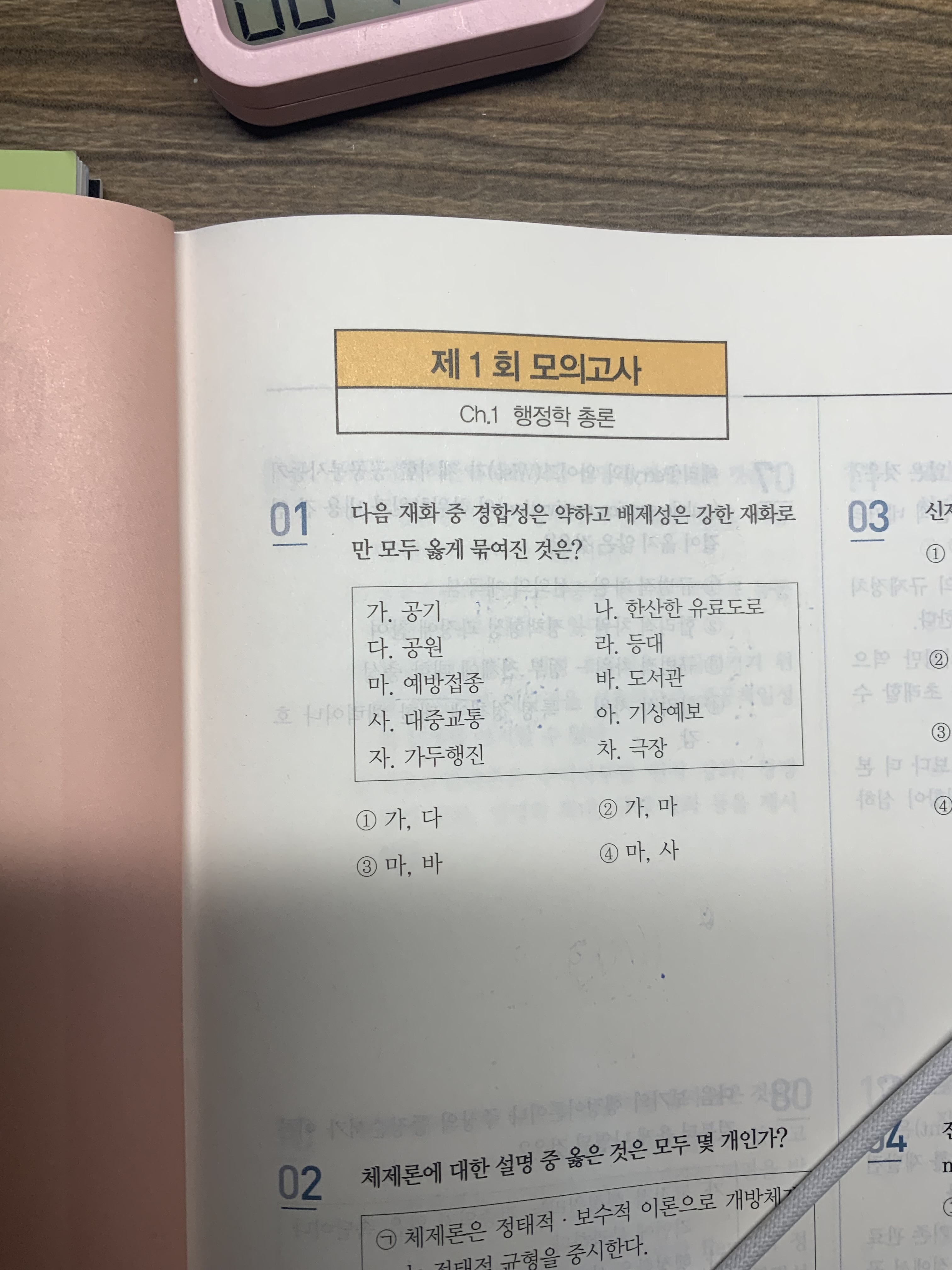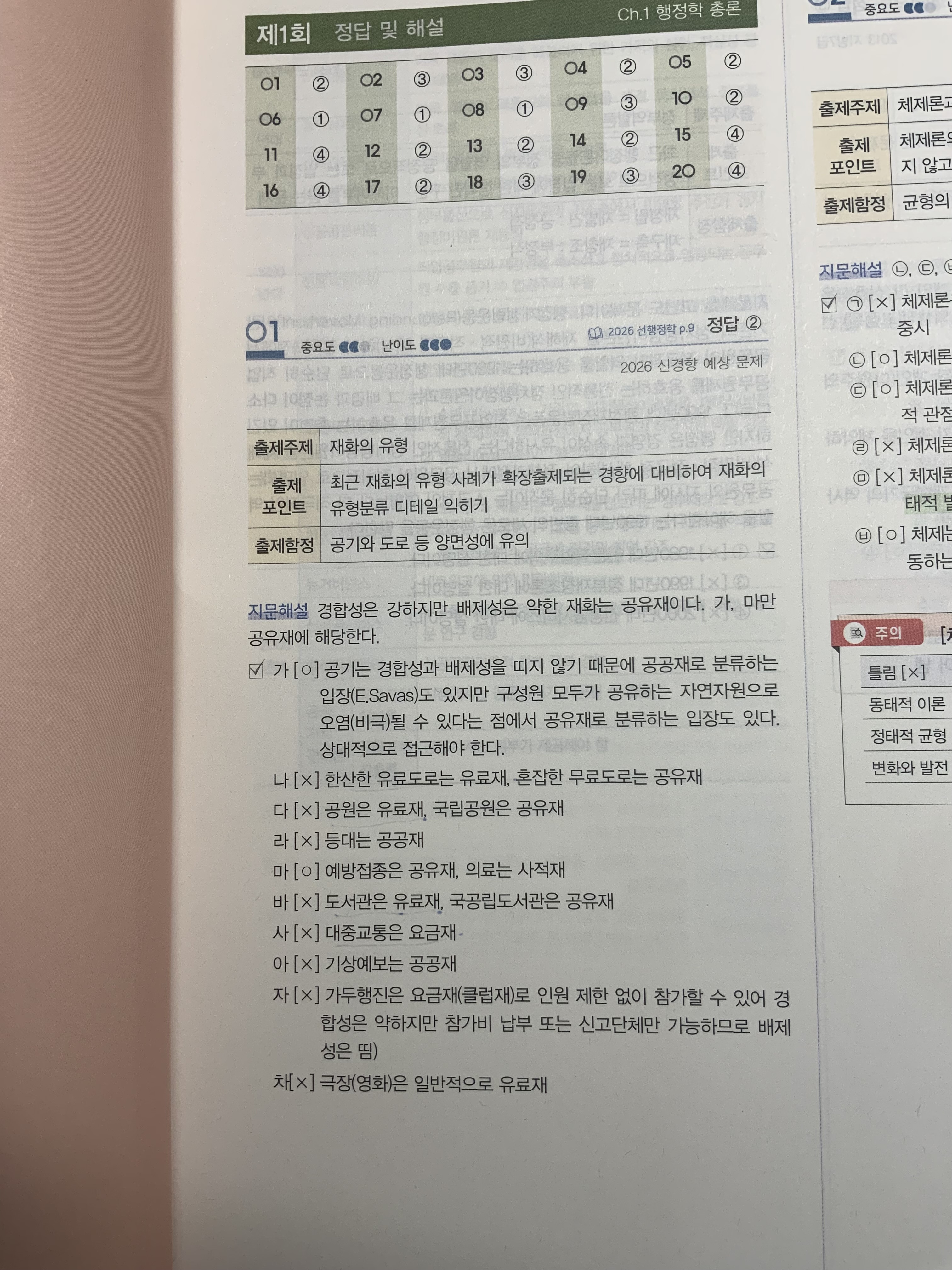 네, 죄송하게도 첫 문제부터 오류가 나왔네요...ㅠ 경합성과 배제성의 "강약"이 바뀌어 버렸습니다. 번거롭더라도 정오표를 참고하시기 바랍니다.