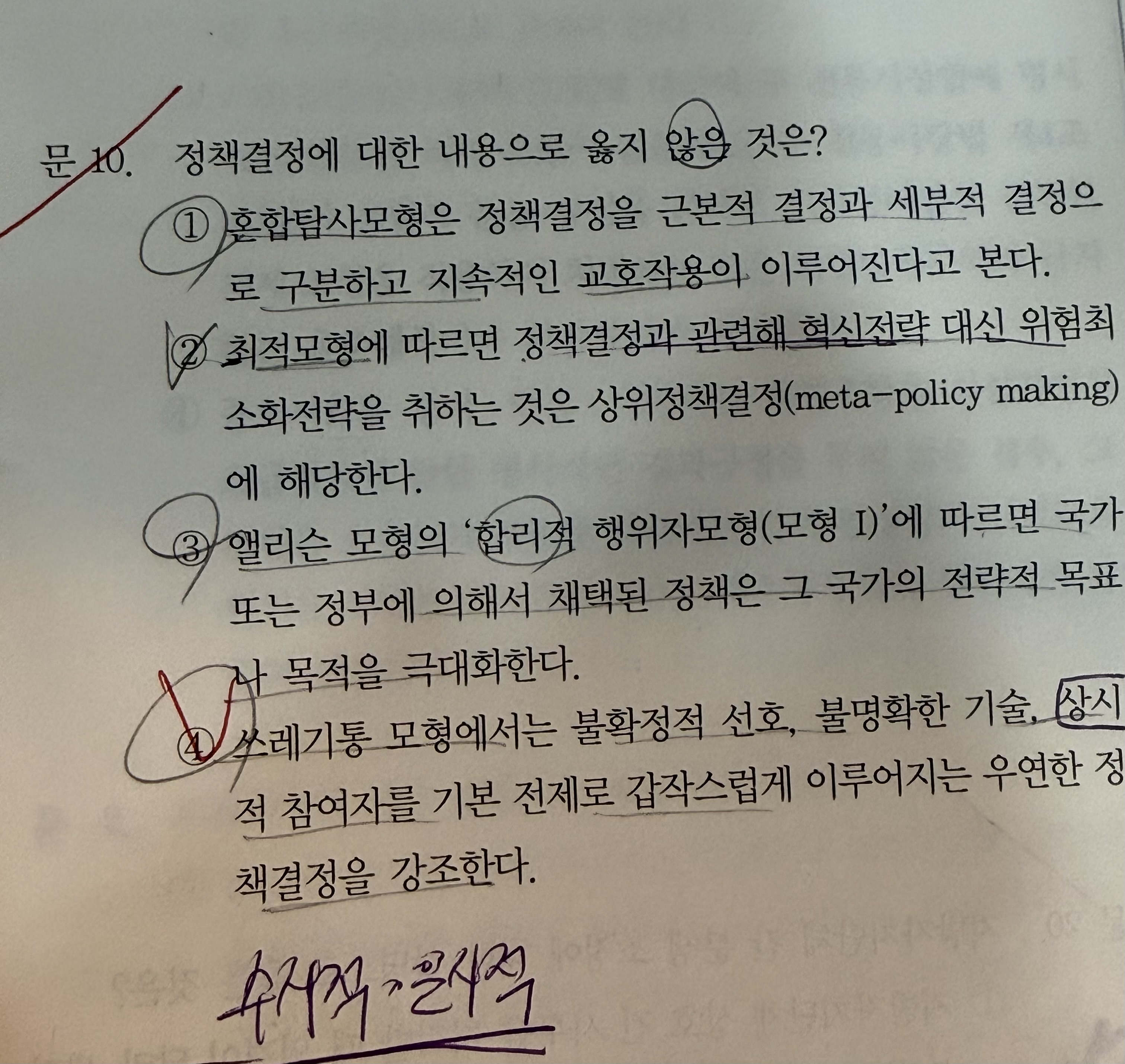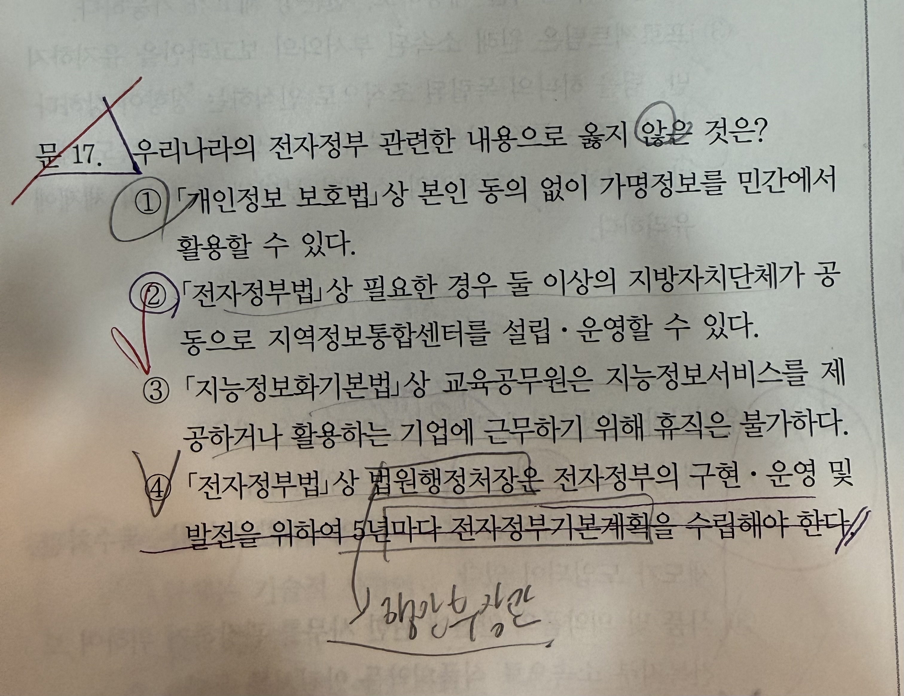 안녕하세요 교수님 어제 공단기모의고사를 보고왔는데 해설지를 봐도 이해가 안 가 질문드립니다. 10번에 2번지문이 왜 맞는 지문인지 모르겠어요ㅠㅠ 전 위험최소화 전략 대신 혁신전략 취하는 것이 상위정책이라고 알았는데 지문은 반대로 되어있는데 맞다고 하여 궁금합니다.. 또 17번에 4번 문제에 기관의 전자정부 기관의 기본계획이라고 쓰여있었으면 저도 맞다고 생각했을 것 같은데, 따로 언급이 안되어있길래 행안부장관인 줄 알았어요ㅠㅠ 어떻게 구분해야할까요? 항상 감사합니다.