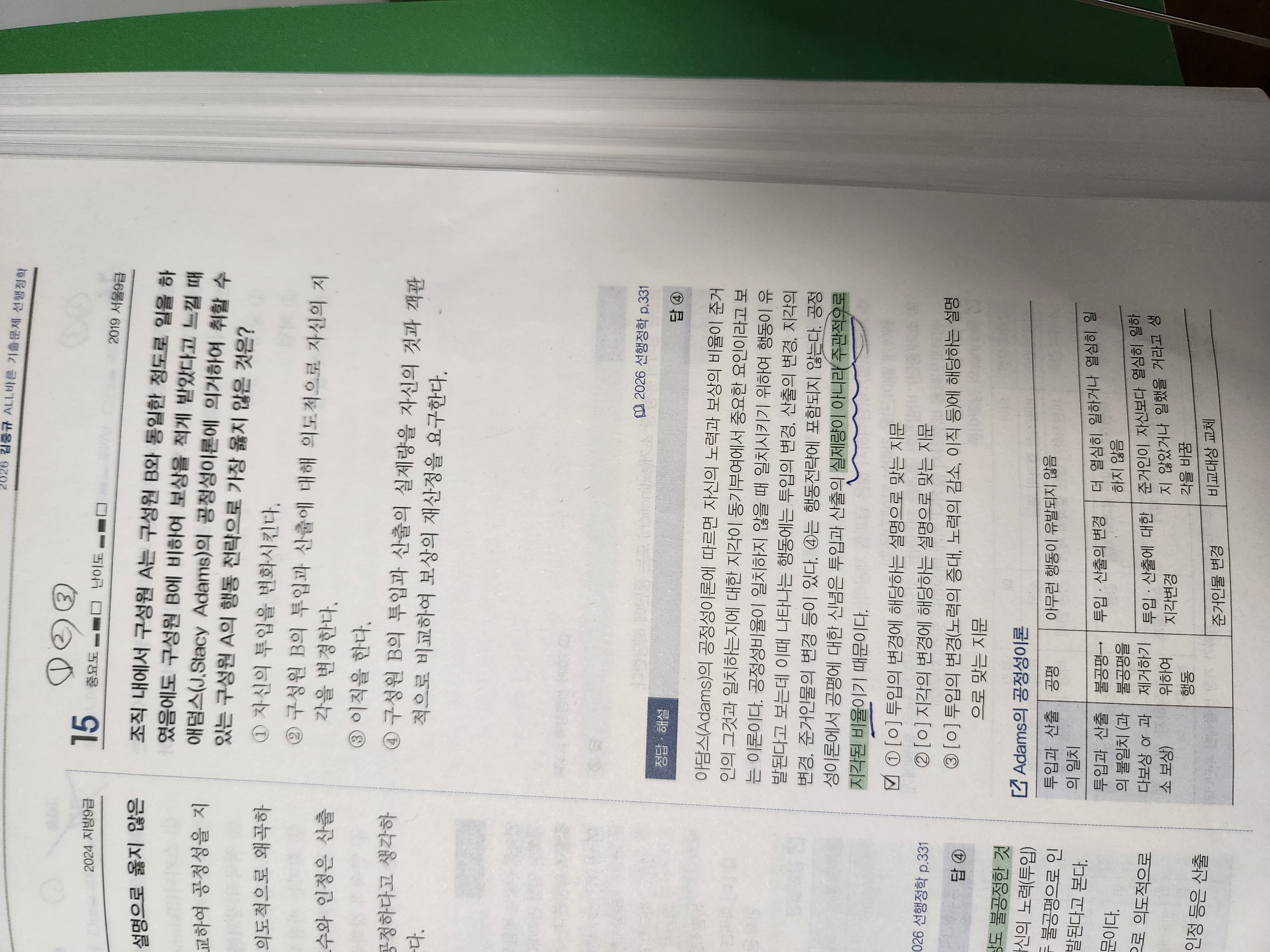 선생님, 안녕하세요~ 매번 답변해주시는 걸 보면서 공부하고 있어 항상 감사드립니다. 2026 기출문제집에서 p.321의 아담스의 공정성이론 문제에서 질문이 생겨 글을 남깁니다. 문제 15번의 4번 선지는 해설에서 '실제량' 이 잘못된 것이라고 되어있는데 그럼 단순히 보상의 재산정을 요구하는 것은 행동전략으로 가능한지 질문드립니다!