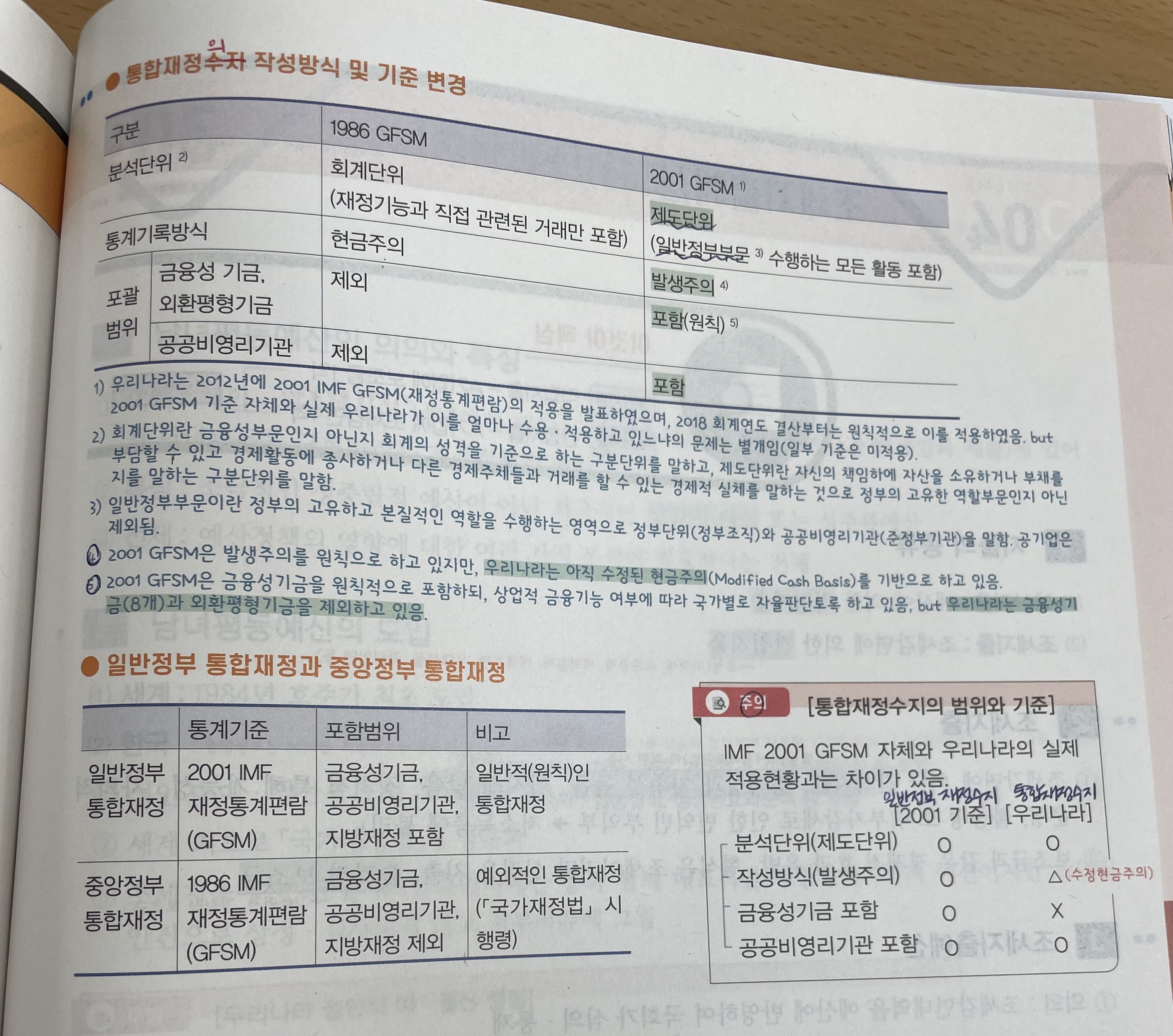 우리나라의 경우 주의에 있는 내용과 같이 일반정부 통합재정(2001GFSM)을 사용하고 있으나 실제적용에서는 일부 다르게 적용하고있는데, 이와는 별개로 중앙정부 통합재정(1986 GFSM)도 국가재정법 시행령에 의해 따로 사용하고 있는건가요? 일부 다르게 적용하고 있는 일반정부 통합재정과는 아예 별개라고 이해했는데 맞을까요? 감사합니다