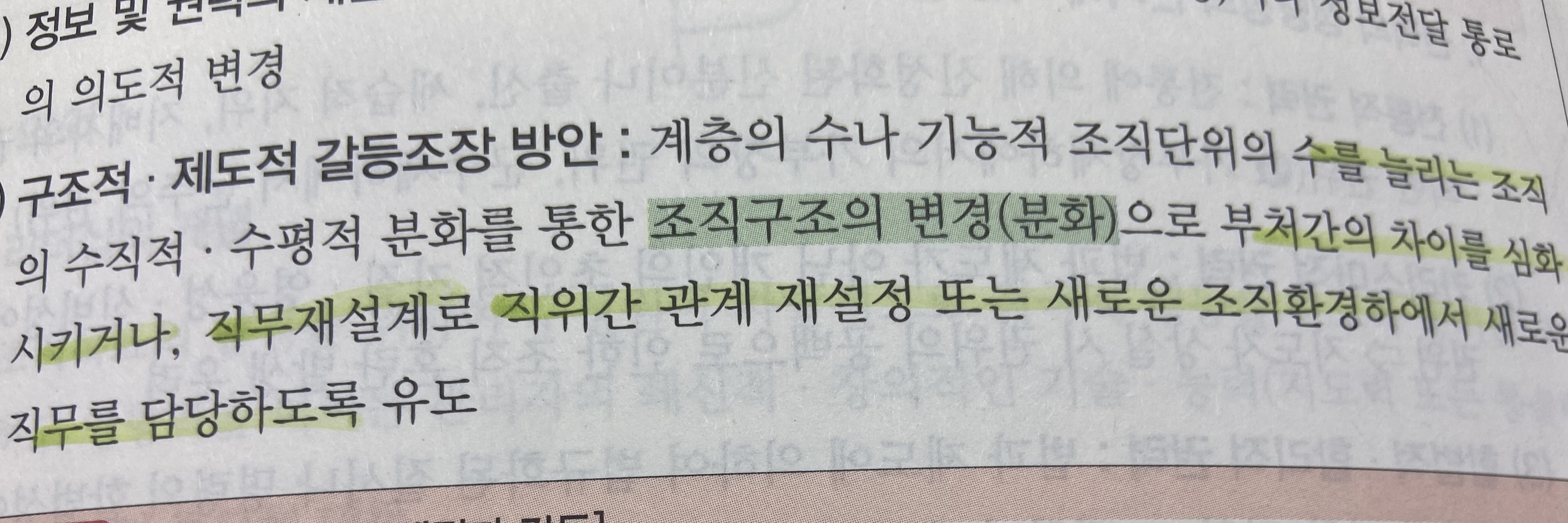 직무 재설계로 직위관계 재설정하는 것은 갈등을 조장한다고 하는데 조정의 방법에 계층의 직위추가가 있어서 문의드립니다 직무 재설계 안에 직위추가의 방법이 있고 그 직위 추가의 방법은 조정 방법 중 하나이지만 직무 재설계는 갈등 조장하는게 맞을까요? 갈등조장이랑 조정이 서로 상충되는 의미 같아서 문의드립니다.