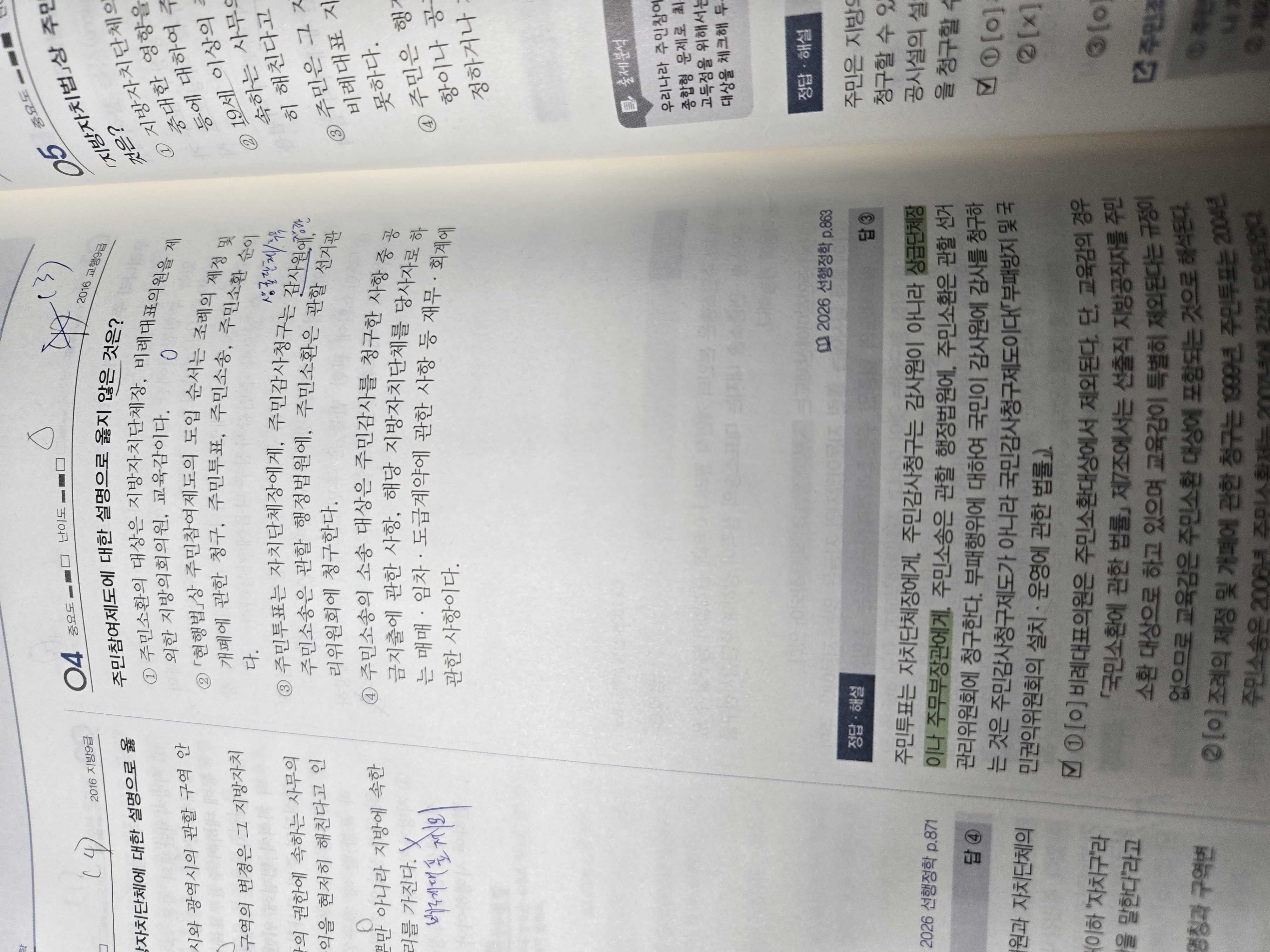 주민소환 대상에 지방자치단체장, 지방의회의원, 교육감이 대상이기에 지방자치단체장과 비례대표의원이 대상에서 제외된다는 1번 선지는 틀린 것이 아닌지 질문드리고 싶습니다. 선지에 나온 것 중에서 제외 되는 것은 비례대표의원만 해당하는 것이 아닌지도 여쭙고 싶습니다. p.s 답변 감사드립니다.