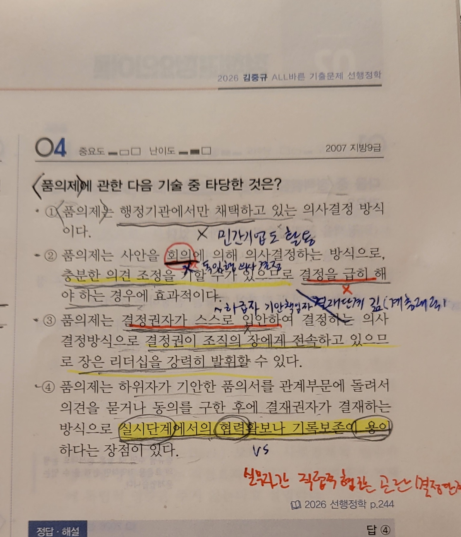 희의나 토론방식에 의한 결정이 아니므로 충분한 의견조정 안됩니다. 기관장이 최종 결정권을 가지므로 리더십을 강력히 발휘할 수는 있습니다. * 모두 품의제라는 기본개념을 이해하시면 해결될 수 있는 내용입니다. 대부분의 질문이 기본개념 이해부족에서 오는 궁금증인거 같습니다. 강의를 통하여 기본개념을 정확히 이해하실 것을 추천드립니다...^^