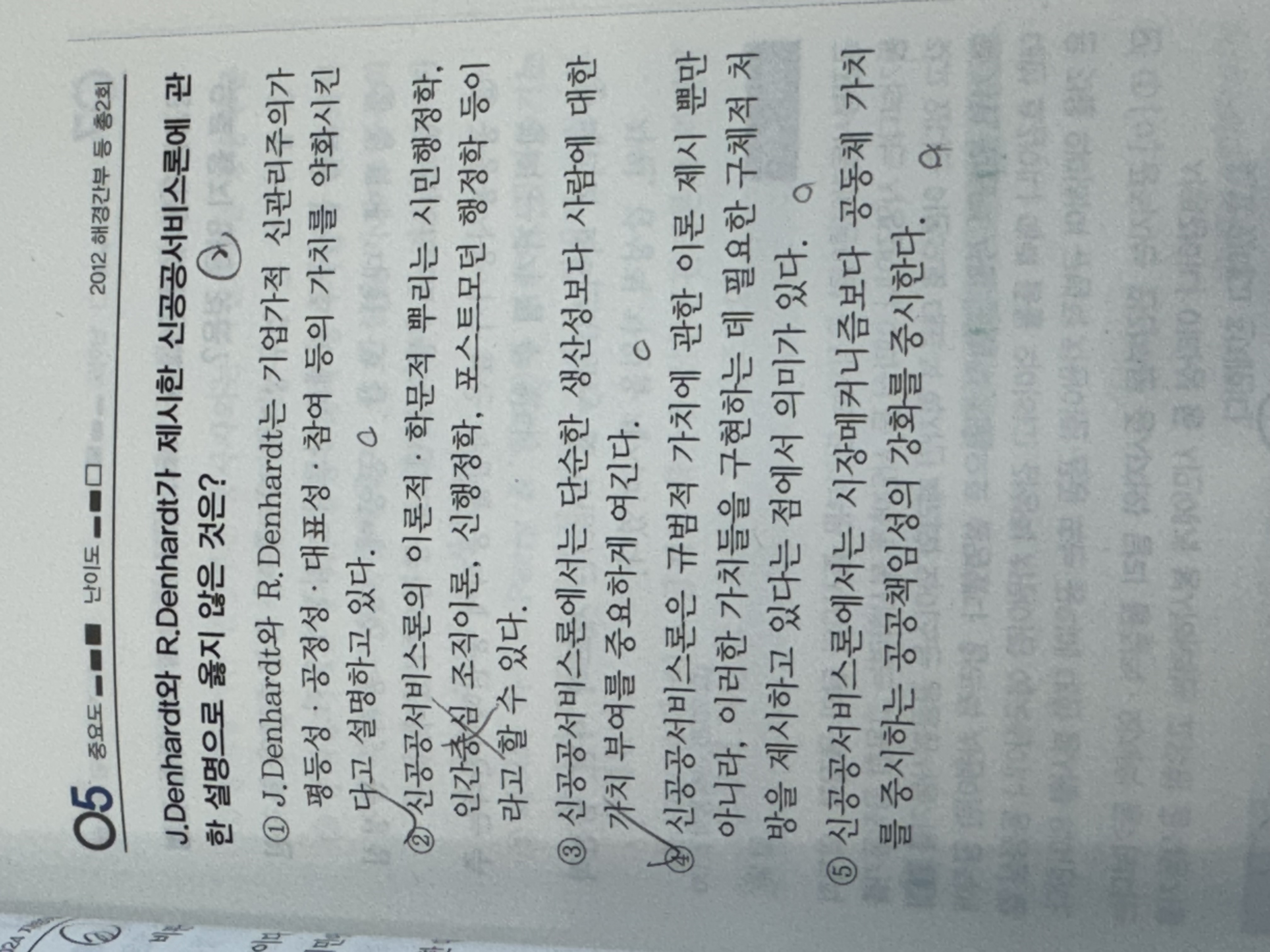 신공공서비스론을 너무 포스트모더니즘과 연관시켜 인간중심이 아니라 인본주의라고 엄격하게 구분하는 것은 무리입니다. 여기서는 후기산업사회의 특징을 언급한게 아니므로 그냥 인본주의라고 해석해야 합니다.