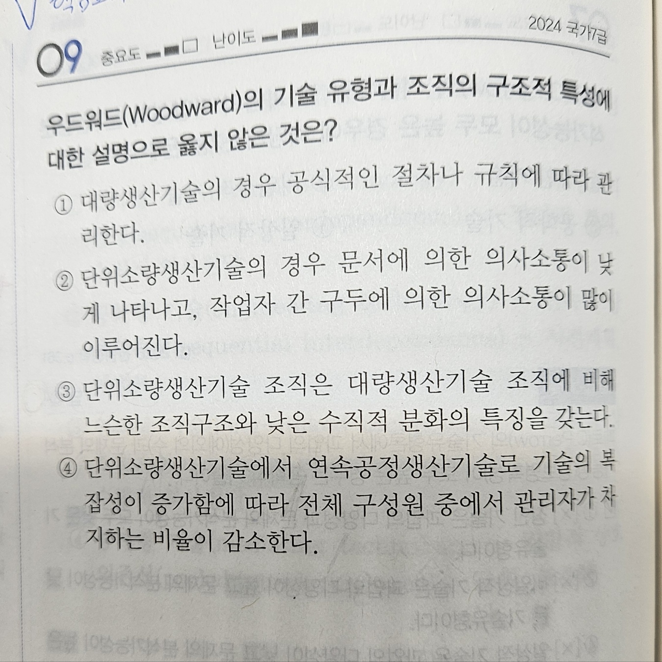 안녕하세요. 26년 기출 문제집 p.362) 문제 9번- 아직 기출 강의가 없어서 질문드립니다! 1. 이건 핵심요약책에는 없는 이론인데, 다른 기술 유형 이론과 같이 생각하면 될까요? 아니면, 이 이론도 별개로 알아둬야 할까요..?? 2. 기술의 복잡성이 높아지면, 통솔범위가 좁아지고, 중간 관리자의 비율이 늘어난다는 논리구조로 접근하면 되는지 여쭙습니다. 감사합니다!