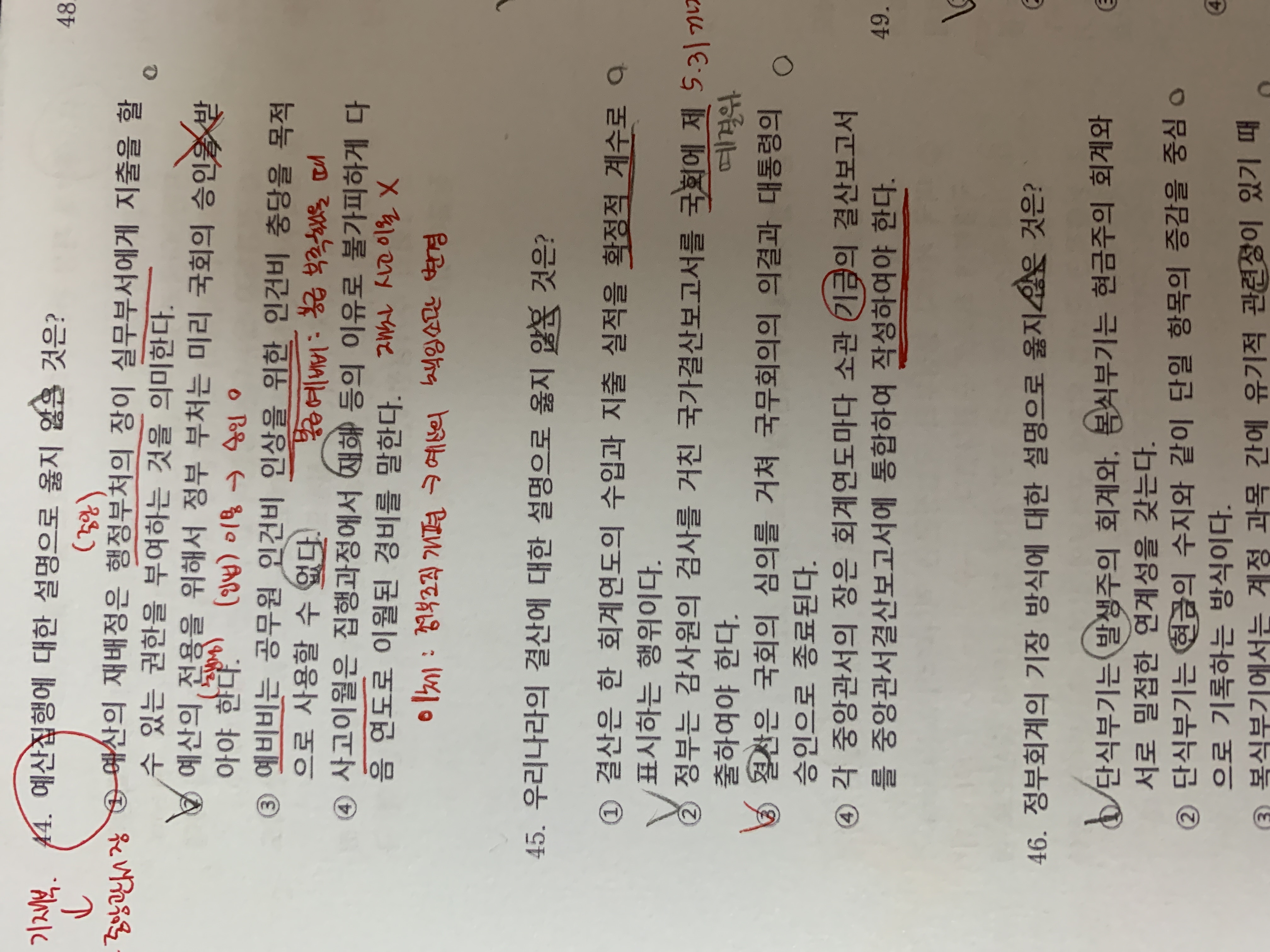 45번 답이 2번 아닌가요? 국회가 아니라 예결위라고 본거 같아서요..