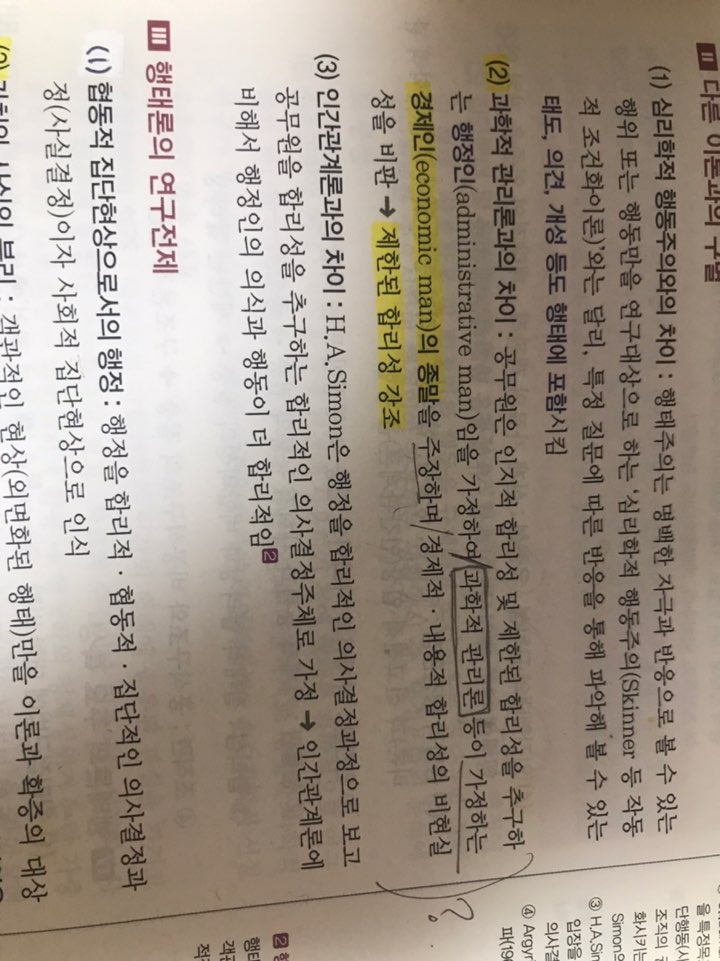 행태론적 접근이 과학적 관리론과의 차이에서 "과학적 관리론 등이 가정하는 경제인의 종말을 주장하며~" 이게 왜 행태론적 접근과의 차이점이죠?.. 과학적 관리론이 가정하는걸 주장한게 차이점인가요??? 저부분이 이해가 안가네요ㅠㅠ (사진 첨부 하였습니다~!)