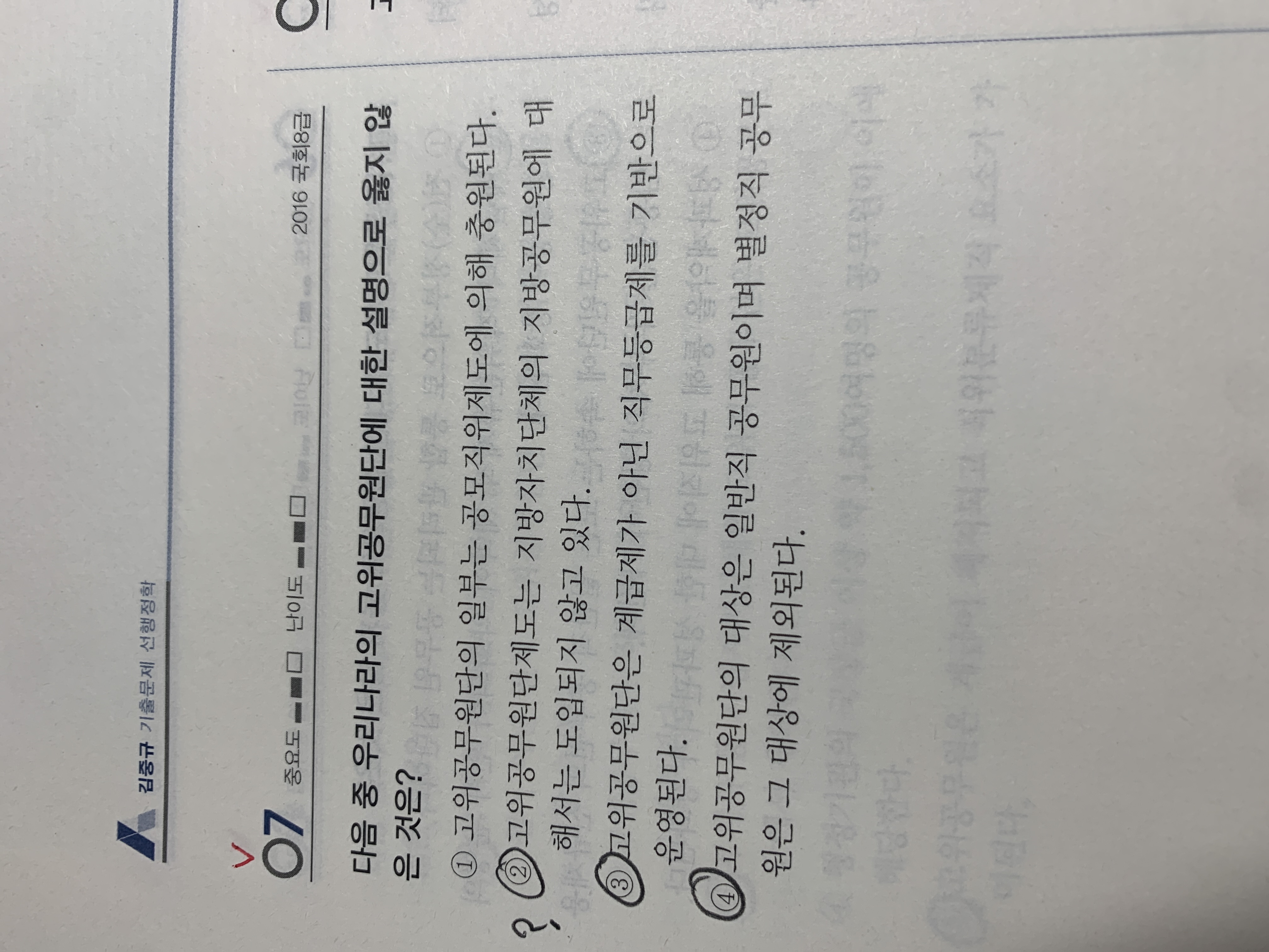 2번 지문은 옳은 지문으로, 지방자치단체에서 재직 중인 국가공무원은 대상이 되지만 지방자치단체에서 재직 중인 지방공무원은 고위공무원단에 포함되지 않습니다. 지금 알고계신 대로 국가공무원이 대상이지만, 지방에서 재직 중이더라도 신분이 국가직이면 고위공무원단에 포함되고 지방직이면 안 된다고 정리하시면 됩니다.