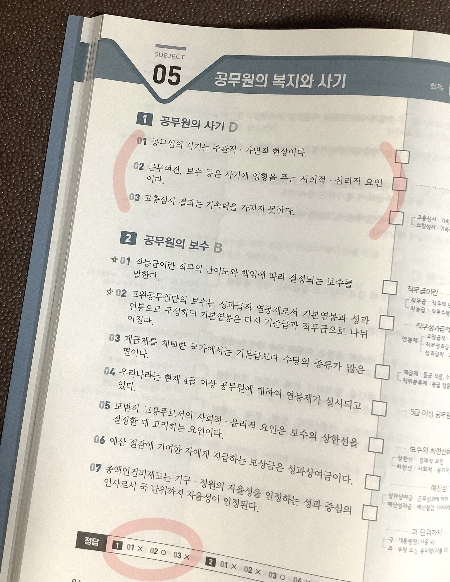 공무원의 사기 1,2,3번 답 확인 부탁드립니다! 정오표에 나와 있지 않아서요ㅠㅠ O X O 아닌가요?
