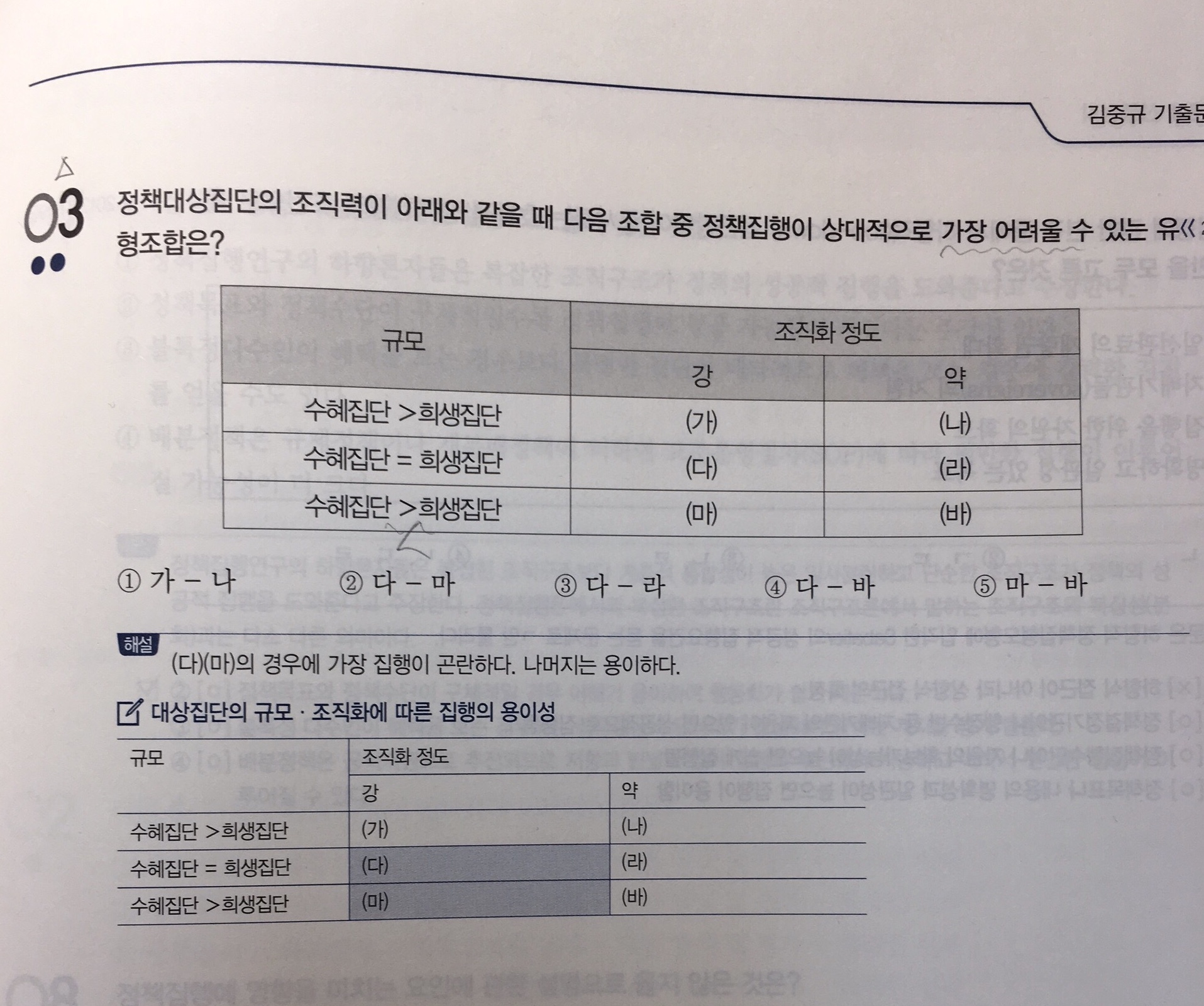안녕하세요~ 19년 기출문제집 정오표가 아직 없네요~ p.383 문제3번 표에 조직화강도 (마),(바)에 해당하는 규모는 수혜집단 > 희생집단으로 되어있습니다. >> 수혜집단 < 희생집단으로 수정이 되어야 맞는 문제 같은데요~ 확인 부탁드려요~ 해설에도 같은 오류가 있습니다.