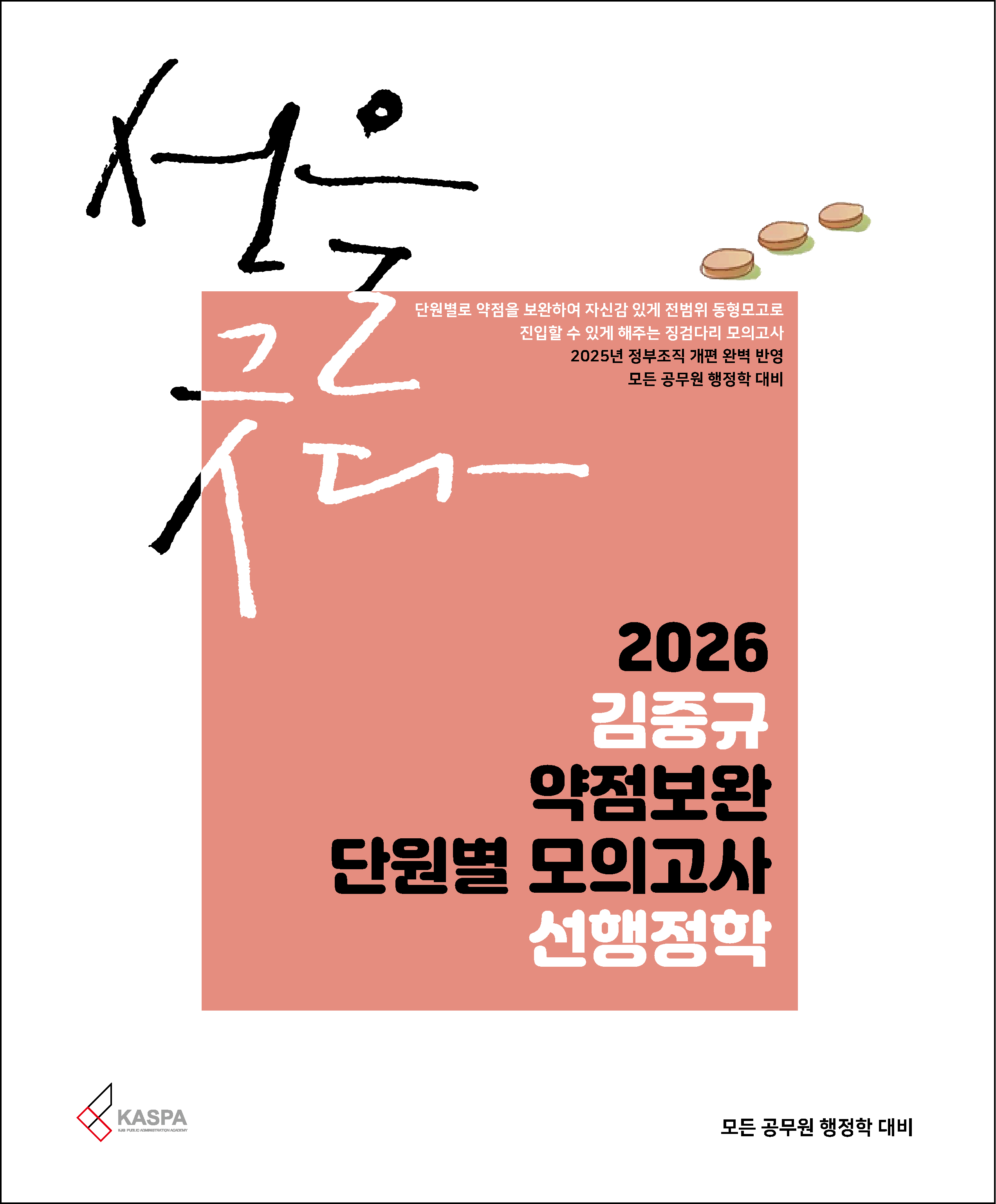 이 책이 단순히 정답 개수를 늘려주는 교재이기보다, 틀리는 이유를 줄여주는 교재가 되기를 바란다. 그리고 전범위 동형모고와 실전을 앞두고 행정학이 조금 더 명확해지고, 조금 덜 두려워지기를 기대한다.